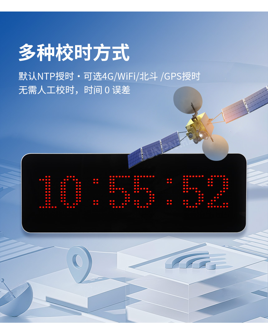 精准计时是高效管理的核心,讯鹏5.0点阵模组款网络同步时钟搭载多元化校时系统 :默认支持 NTP 网络授时,还可根据场景需求扩展 4G、WiFi、北斗、GPS 授时 。无需人工手动校时,系统自动与标准时间源同步,实现 时间0误差 。这一特性对手术室、火车站、考场等场景至关重要——手术室需精准把控手术时长,交通枢纽需多设备时间同步,考场需严格计时保障公平。讯鹏时钟以“0 误差”打破时间偏差的管理痛点,让多区域、多设备的时间协同“无缝衔接”。