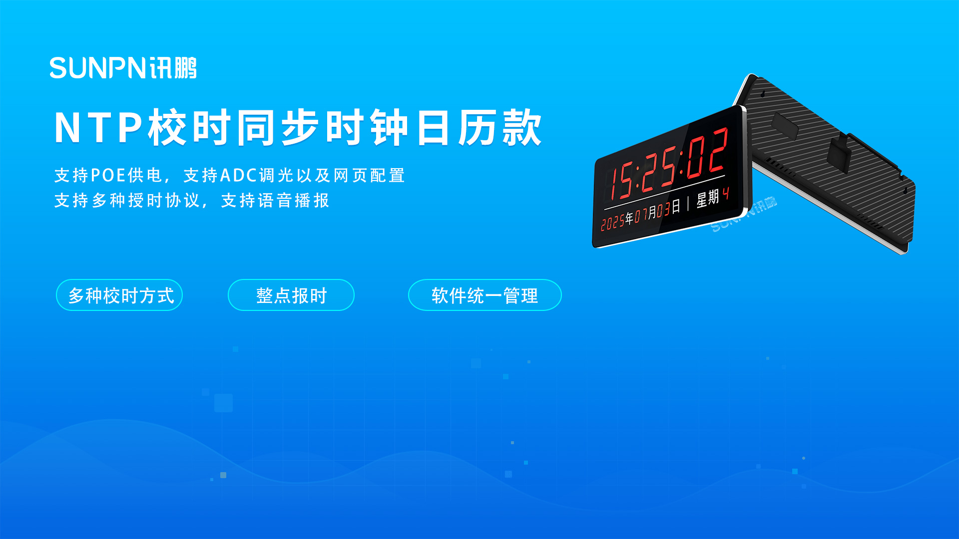 3. 讯鹏LED网络同步时钟高亮显示,清晰耐用