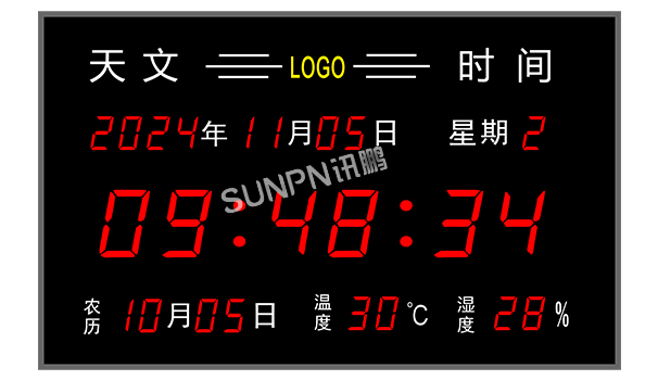 讯鹏天文时间显示屏,以北斗授时为技术核心,融合“断电记忆、温湿度监测、多元定制”等优势,重新定义了“时间管理设备”的功能边界。天文时钟不仅是一块显示时间的屏幕,更是连接“精准时间”与“智能环境”的枢纽——为军事指挥的精准调度、科研实验的严格计时、办公场景的高效运转,提供了“一站式”解决方案。