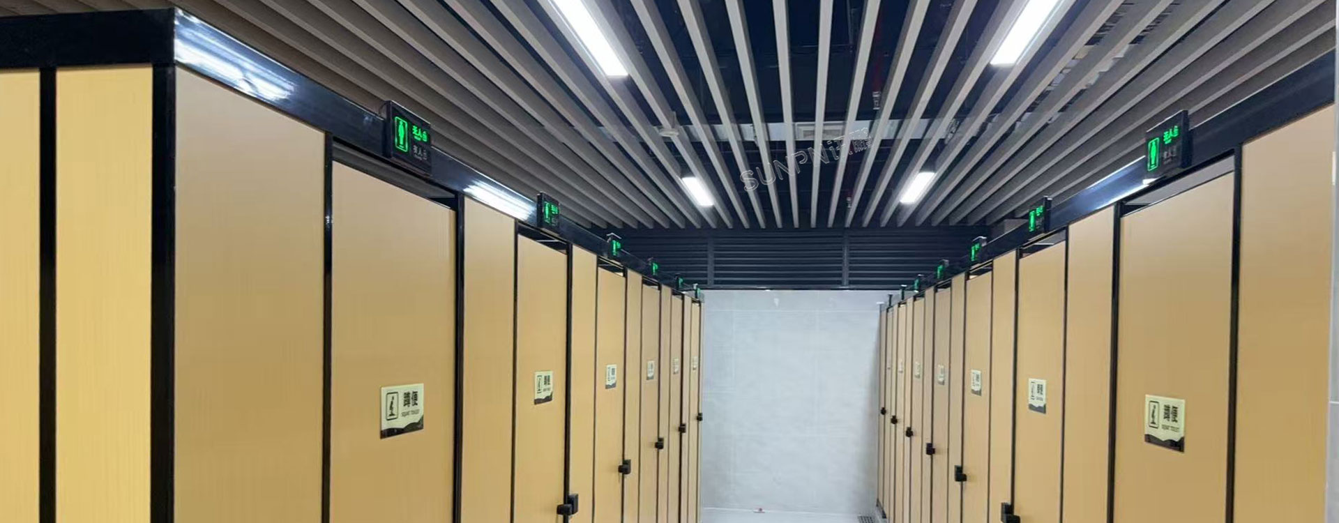 门把手集成90度旋转指示器,通过红绿双色标识(绿=空闲,红=占用)直观显示厕位状态,并同步至厕位有无人指示牌,减少用户寻找空位的时间。