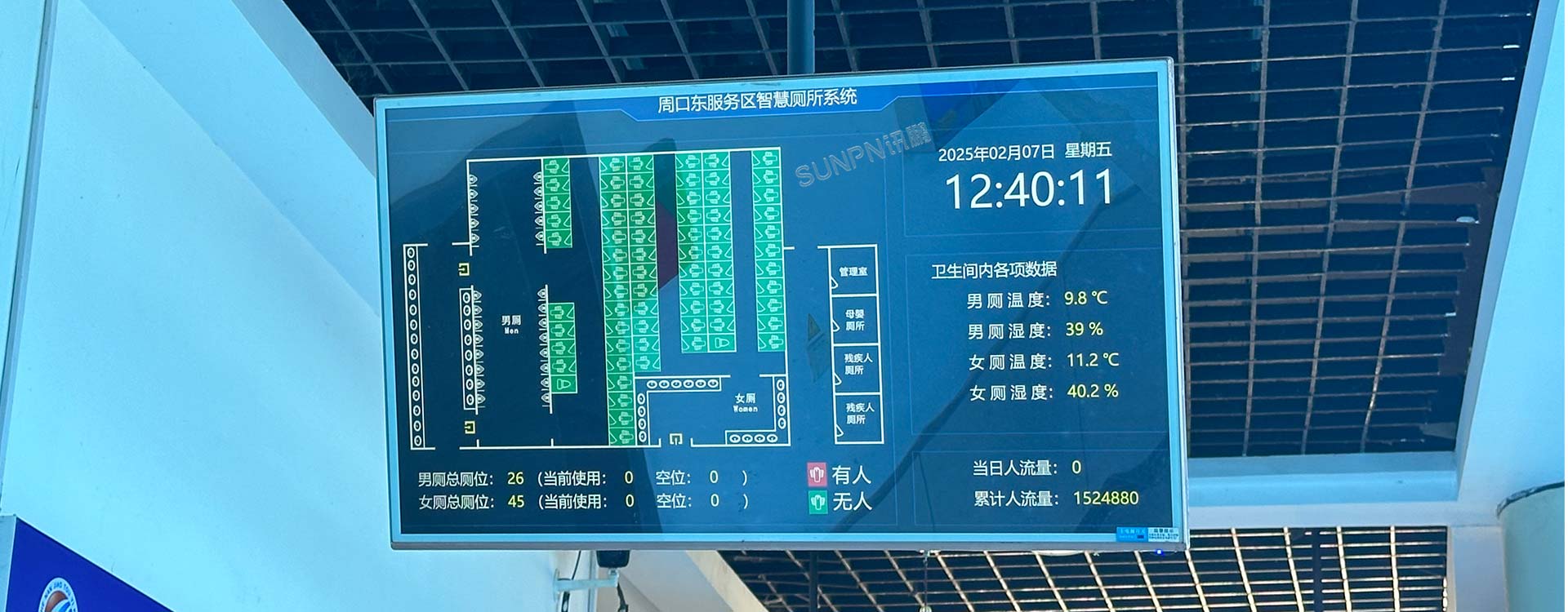 在高速公路服务区,"如厕难"一直是困扰旅客的痛点。以周口东服务区为例,高峰期时公厕门前排起的长队、隔间内此起彼伏的敲门声、空气中挥之不去的异味,不仅影响旅客体验,更折射出传统公厕管理模式的滞后。讯鹏科技智慧公厕系统的落地应用,正通过物联网技术重构公厕服务逻辑,为高速服务区带来一场静默的数字化变革。
