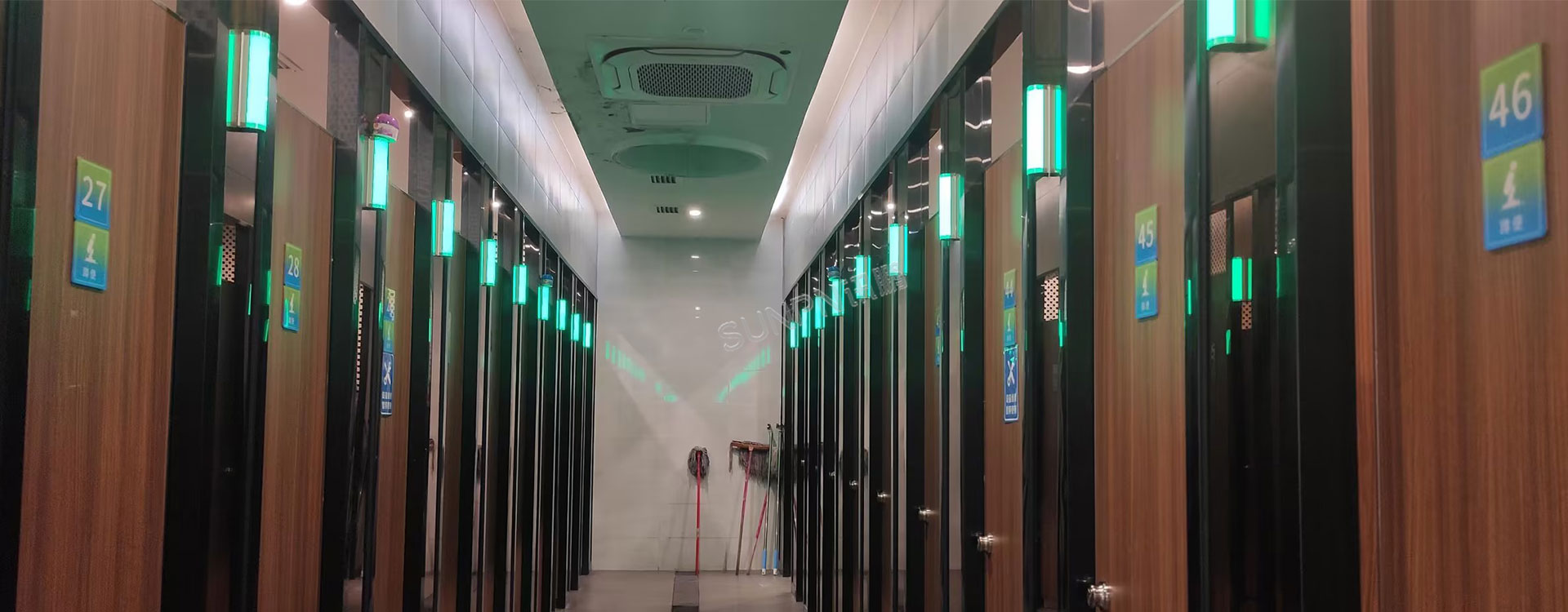讯鹏智慧公厕的“大脑”是一套由激光人体感应器和厕位有无人指示灯组成的监测系统。激光感应器通过高精度扫描,实时检测隔间内是否有人,并将数据同步传输至走廊显示屏和隔断门上的指示灯。绿色灯光表示“空闲”,红色灯光代表“占用”,用户无需猜测,一眼即可锁定目标。