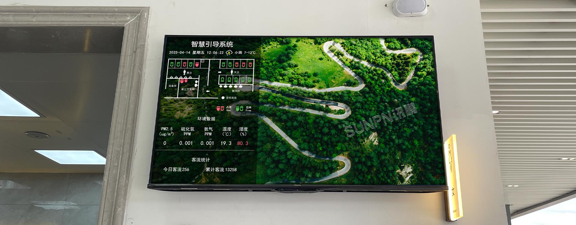 1. 智慧公厕系统引导大屏:公厕入口处安装智慧公厕系统屏,市民在大屏可以看到厕位的布局和剩余厕位数据情况;