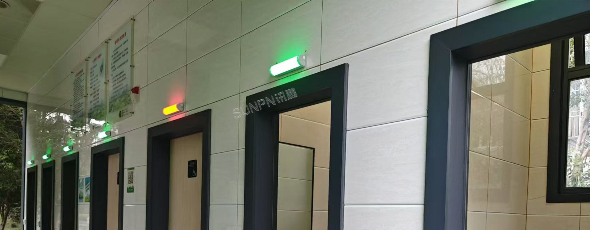 安装在每个厕位隔断门板上的有无人指示灯,通过红色表示"有人占用"、绿色表示"空闲状态",让游客一目了然地识别厕位可用性,避免了盲目推门的尴尬与不便。