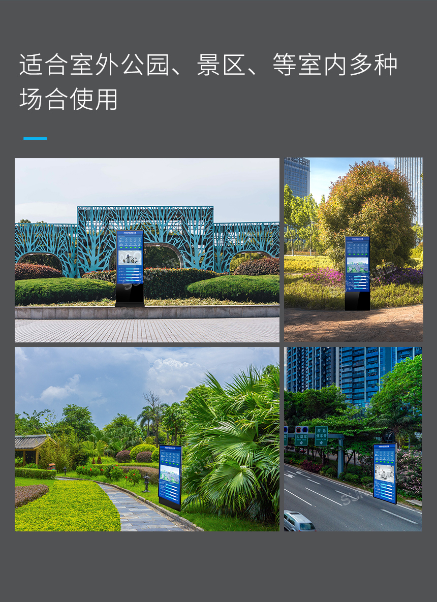讯鹏环境实时监控系统,可搭载广告一体机,适合室外公园、景区、等室内多种场合使用,对空气清洁度指标数据进行全天候自动在线采集的监测站,将景区负氧离子、空气温度湿度、PM2.5等环境质量参数,联网通信、获取本地天气信息,采集本地环境状况,可远程投放广告信息。实时环境气象监测与发布,实现了环境实时监控系统管理信息化、自动化、可靠化安全化移动化、智能化。