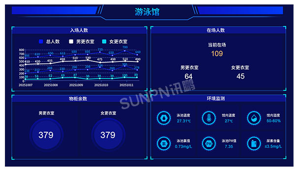 从数据展示方式、界面布局,到监测指标(余氯、PH、池水温度、浊度、ORP、尿素含量、馆内温度等),均可按需定制。无论是游泳馆的大屏展示,还是婴幼儿水育中心的精细化监测,多样的可视化界面与扩展指标,满足不同场所的差异化管理需求。