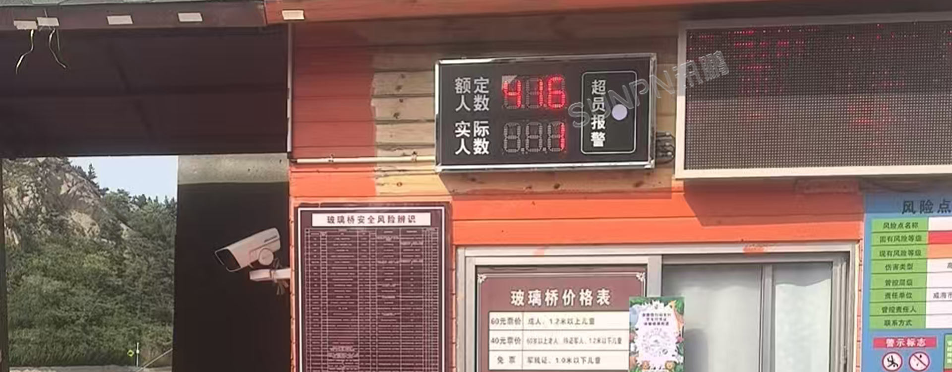讯鹏科技智慧客流统计系统以创新技术破解行业痛点。其AI算法摄像机可精准识别戴帽、遮阳伞等复杂场景下的游客,误差率低于0.5%;强光环境下通过智能滤噪技术,有效排除人影、物影干扰,确保数据真实可靠。系统实时采集的客流数据同步传输至LED客流显示屏,景区管理人员可随时查看当进入玻璃桥的游客数。当客流接近预设阈值时,显示屏自动触发声光报警,辅助管理员快速启动禁止游客进入玻璃桥策略,从源头上降低拥挤超载导致的安全风险。