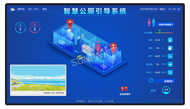 讯鹏办公楼宇智慧公厕系统搭载智慧公厕引导大屏 ,集成多维度信息: