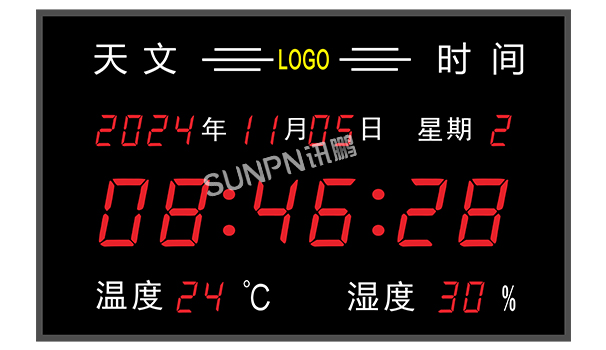 讯鹏天文时间显示屏,以北斗授时为技术核心,融合“断电记忆、温湿度监测、多元定制”等优势,重新定义了“时间管理设备”的功能边界。天文时钟不仅是一块显示时间的屏幕,更是连接“精准时间”与“智能环境”的枢纽——为军事指挥的精准调度、科研实验的严格计时、办公场景的高效运转,提供了“一站式”解决方案。