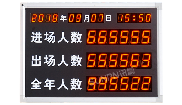 3、实时统计进入景区、开景区和停留景区的人数,通过连接LED显示屏进行实时播报,管理人员可以及时控制入园人数。