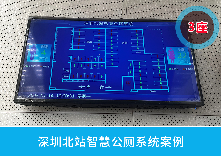 讯鹏科技的智慧公厕通过激光人体感应器实时监测每个厕位的占用状态,结合智慧公厕引导大屏和智慧公厕有无人指示灯,将信息直观呈现给用户。例如,绿色指示灯表示厕位空闲,红色则代表占用,乘客无需推门或询问即可快速定位可用厕位。这种“实时感知+可视化引导”的模式,大幅缩短了寻位时间,有效缓解了高峰时段的排队压力。