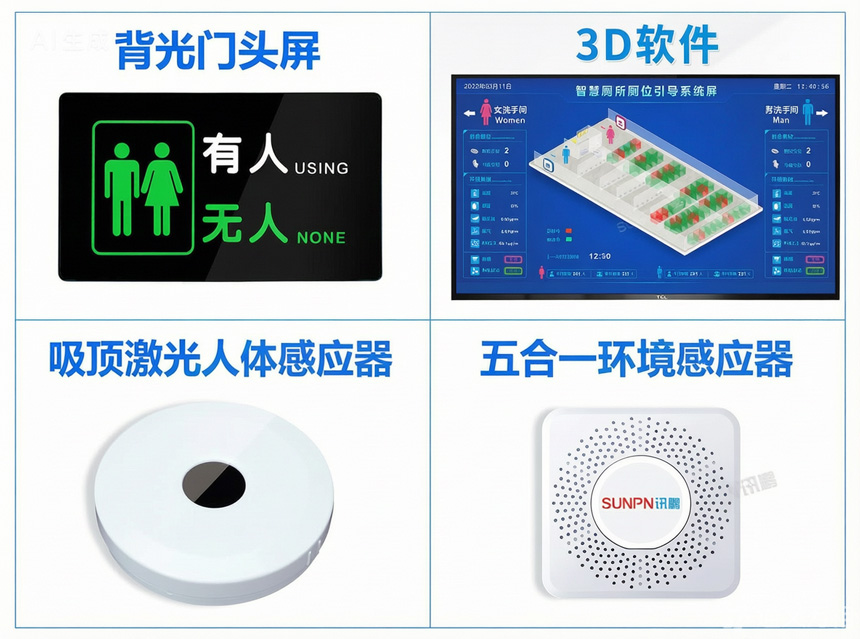 为精准解决痛点,讯鹏在上海6号线某站点部署了智慧公厕系统,核心硬件包括: