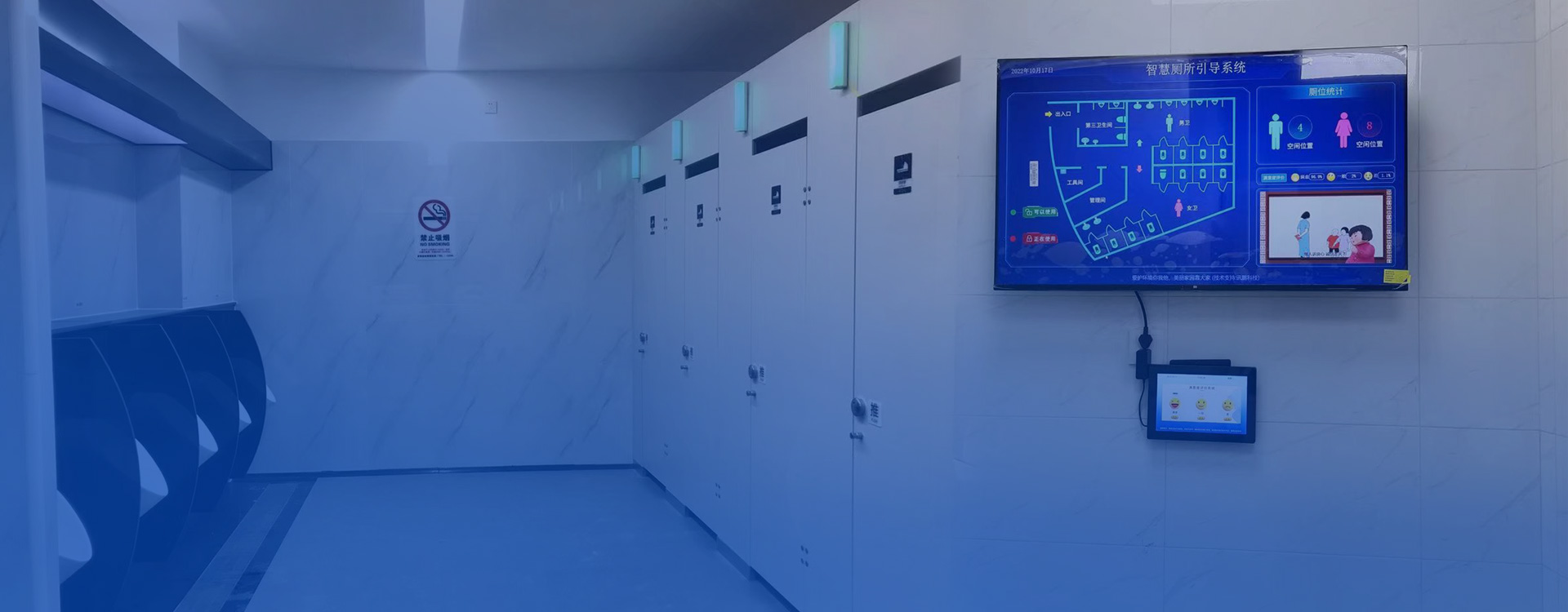 2. 智慧公厕引导大屏:置于公厕入口醒目位置,实时展示厕位占用情况,乘客可快速判断空位位置,减少盲目寻找。