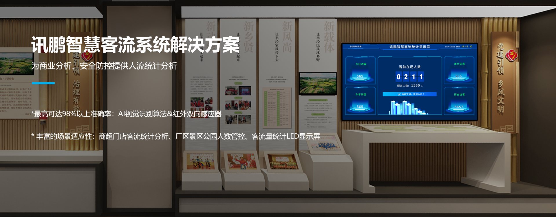 讯鹏客流量管控分析系统采用当前先进成熟的智能客流分析传感器,完成精准的人员数据采集,对接入口LED显示看板和数据控制中心,协助旅游园区、公园、体育馆、博物馆、交易展馆等客流密度大的公共场所,建立精确可靠的客流量监测系统。自动、连续、准确的统计进出场馆、园区的客流量及总客流量数据,准确反映客流量变化趋势。为管理方提供流量控制、游客分析、交通疏导、安全管理、大数据营销等提供详实的数据,并通过对数据的统计分析为场馆或园区资源管理与精准营销提供科学准确的决策依据。