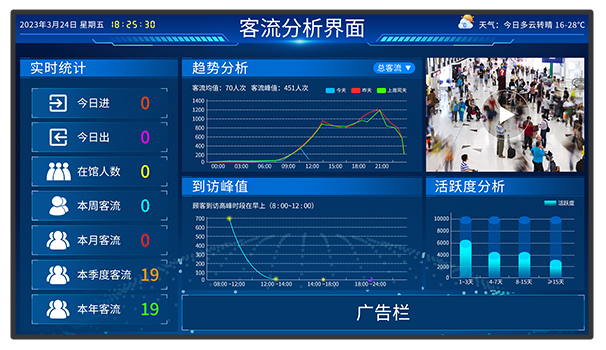 客流量管控分析系统是一种基于人工智能技术的解决方案,通过对场所内的客流量进行实时监测和分析,实现对客流量的精准管控。它的架构主要以硬件软件相结合,由局域网将客流采集硬件和交换机连接,利用技术计算出数值,将数据传输到LCD界面当中显示,同时手机端可以通过移动端软件进行远程实时查看,从而实现一个完整的闭环。
